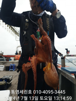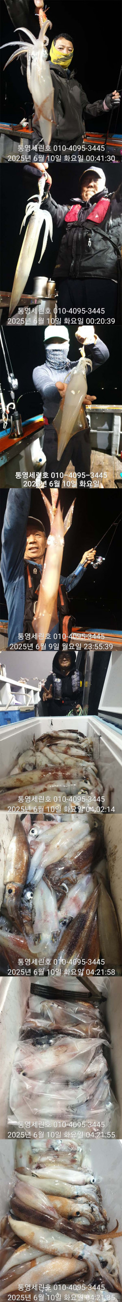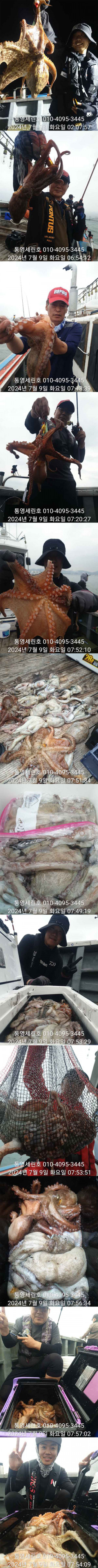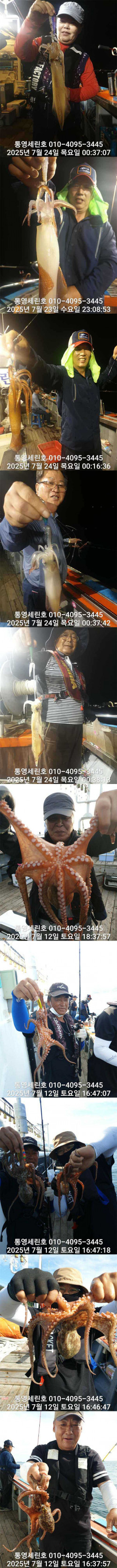 안녕하세요 세린호 선장입니다 문어 첫날 20명전원 K로급 쿨러조황으로 인사드립니다7월 세린호 출항 어종(돌문어 한치) (갈치금어기 조업 계획중)11일 목요일 돌문어 오전5시~오후6시 철수 예약가능 12일 금요일 돌문어 오전5시~오후6시 철수 예약가능13일 토요일 한치 5자리 예약가능 ★한치 오후 3시출항 오전6~7시입항★오모리 봉돌12호 20호 메탈추 45~75그램 요즘은 한치수심층 20m로 메탈은 가볍게한치오징어 20석 1인 13만한치갈치병행 20석 1인 16만갈치 본시즌 16석 1인 20만 ★갈치 오후 2시출 항 오전7~8시입항★ 외부 어군탐지 설치16석 보다넓고 편한낚시를위해개인간격 3.5m 2벌채비가능 그래도공간이 운동장급 많은이용부탁드립니다★세린호예약문의★★세린호예약문의 ☎010-4095-3445★세린호 민호선장☎010-4100-3445 (제로쿨서울 경기권출조시)예약문의 010-9425-4123 ★승선시 필수사항★구명조끼 꼭 착용하셔야 됩니다(구명조끼 미착용 낚시객 벌금100만원)선내에서 음주금지입니다 ★★통영세린호' 밴드★★ 이름 폰번 사진 실명확인후 가입가능https://band.us/n/a3ae70yaH5y81'김민호 계좌번호 하나은행 010 4100 3445 607 ★세린호예약문의 ☎010-4095-3445★세린호 민호선장☎010-4100-3445 네비게이션 주소 : 경남 통영시 산양읍 산양일주로 602